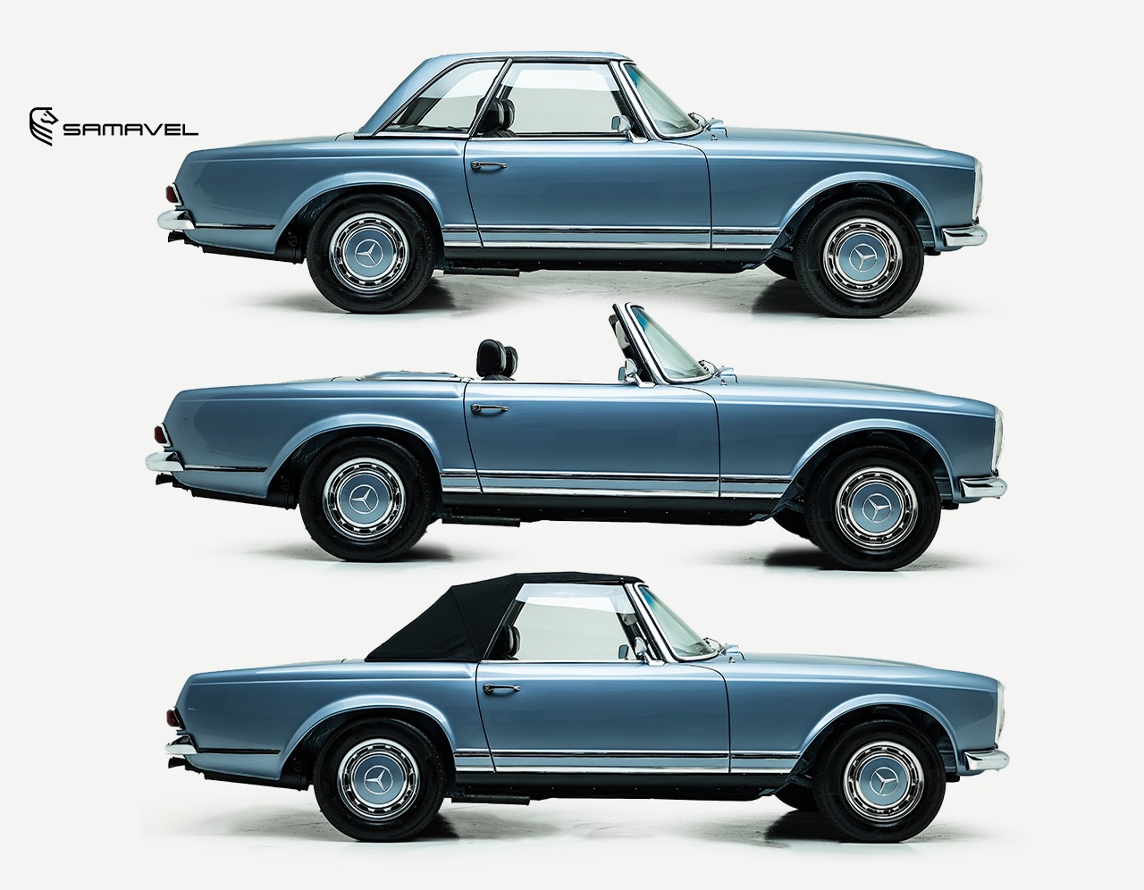 Conversível com opção de capota rígida ou lona, um dos carros mais cobiçados da Mercedes, procurado por colecionadores e com potencial de valorização internacional.